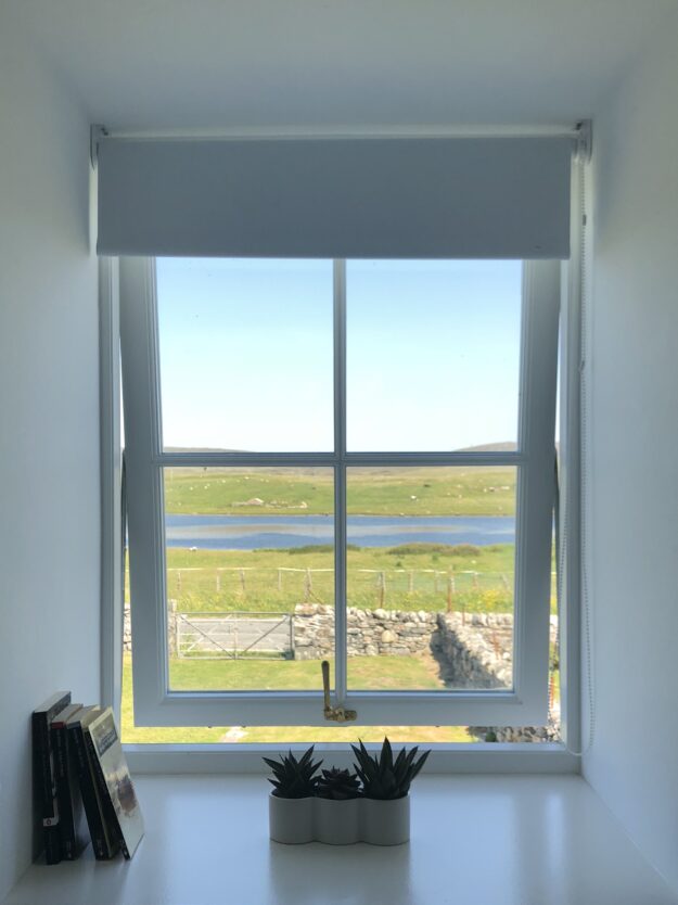 The Schoolhouse sits centrally in its own grounds, comprising a walled garden and paddock. To the front of the house there is ample parking and a large front lawn that looks out across the loch. Behind the house, the sizable, west-facing lawn is ideal for outdoor games and provides wonderful evenings views. There is direct access from the utility room to the outdoor patio where a large table and seating are set out for guests’ use during the spring and summer (a barbecue can be found in the outhouse). From the house, past neighbouring fields, a ten minute walk will bring you to the Atlantic shore; 15 minutes on foot will find you at the beautiful Hosta Beach. This part of North Uist has a beautiful, sandy coastline and is perfect for catching amazing, wide-sky sunsets. On clear days there are views out to St Kilda and the Monach islands.